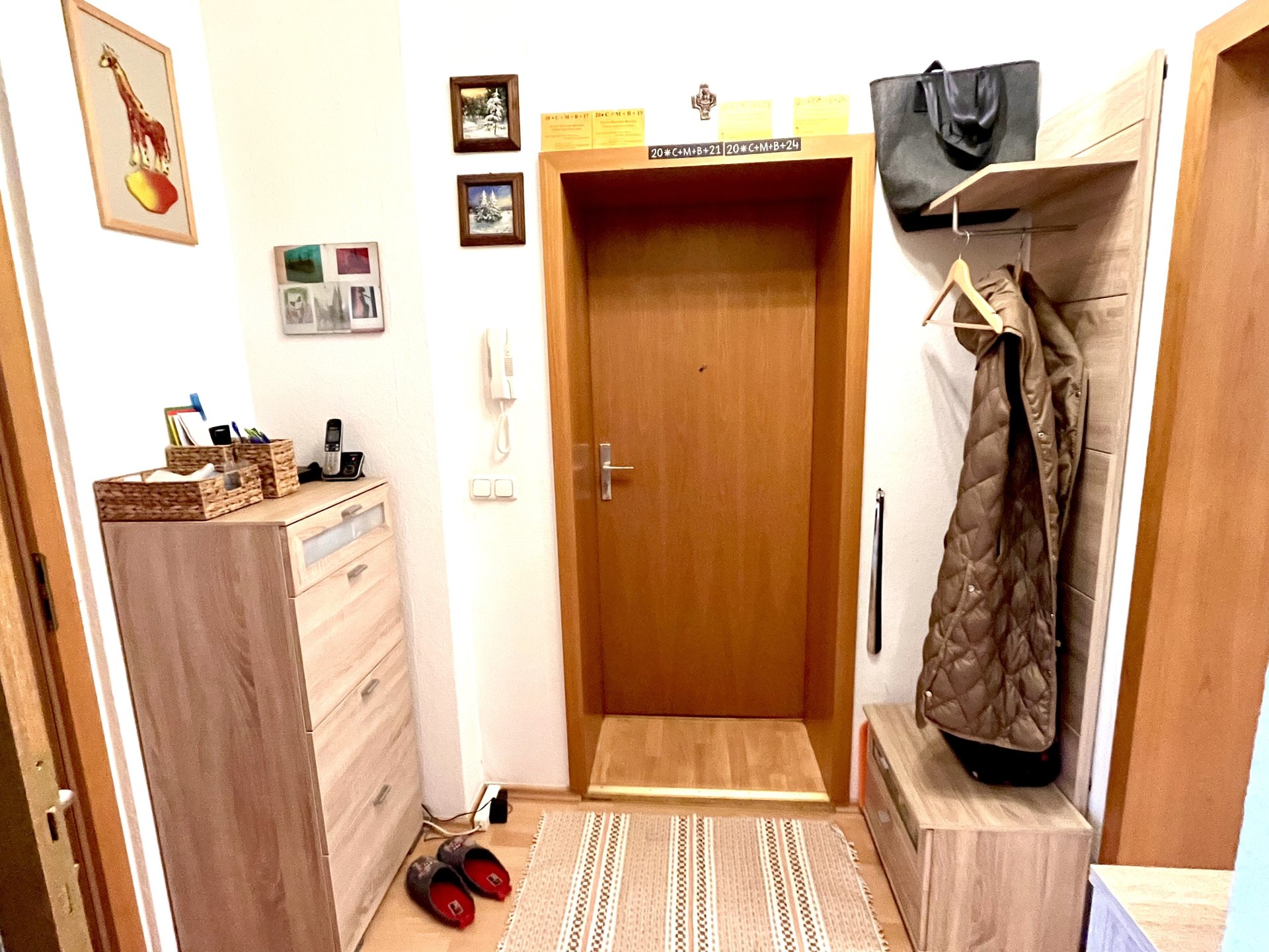 Beim Betreten der Wohnung empfängt Sie ein kleiner Flur, mit Zugang zum Wohnzimmer, der Küche und dem Bad. Das Schlafzimmer ist vom Wohnzimmer aus zugänglich, ebenso wie der hübsche Balkon mit Blick ins Grüne.