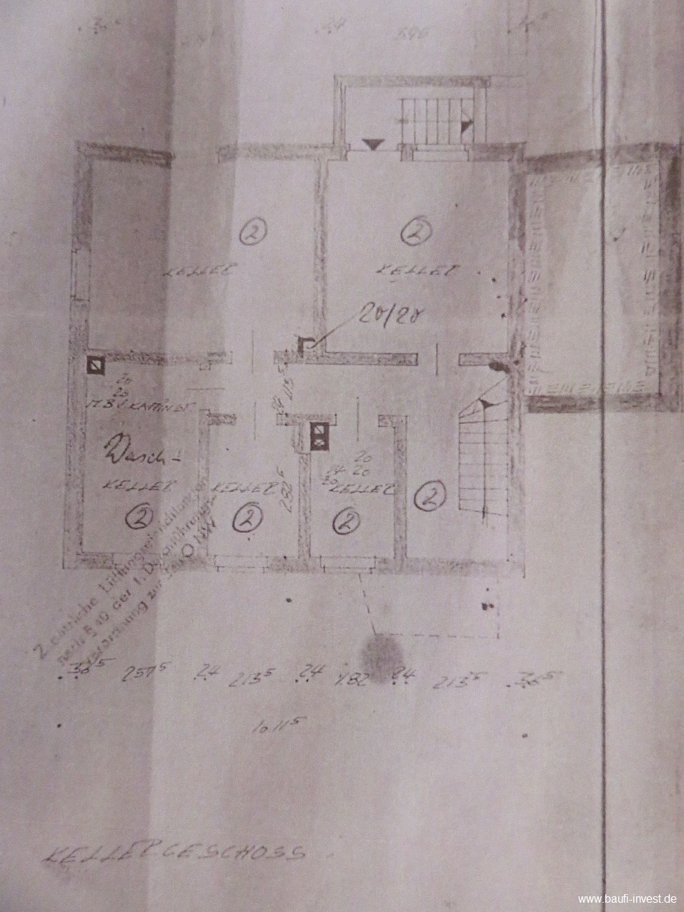 Im Kellergeschoss befinden sich ingesamt fünf Kellerräume, von denen einer als Waschkeller genutzt wird.